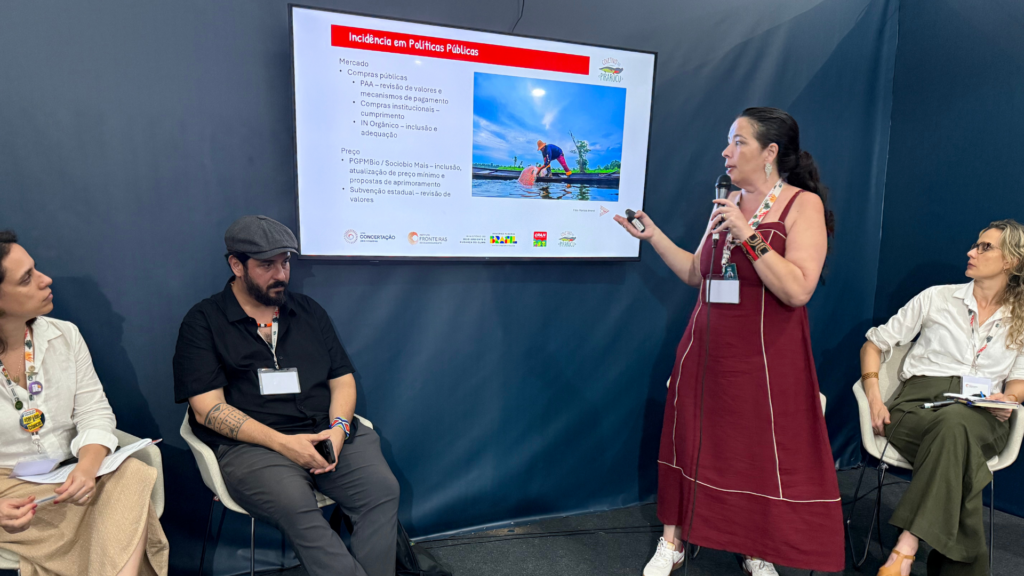 O evento “Sociobioeconomia e Serviços Ambientais: Construindo Mercados Sustentáveis para a Amazônia” foi realizado em parceria pelo instituto Uma Concertação pela Amazônia, que esteve presente com a mediadora Lívia Pagotto, Instituto Fronteiras para o Desenvolvimento, MMA, Operação Amazônia Nativa (OPAN) e o Coletivo do Pirarucu.